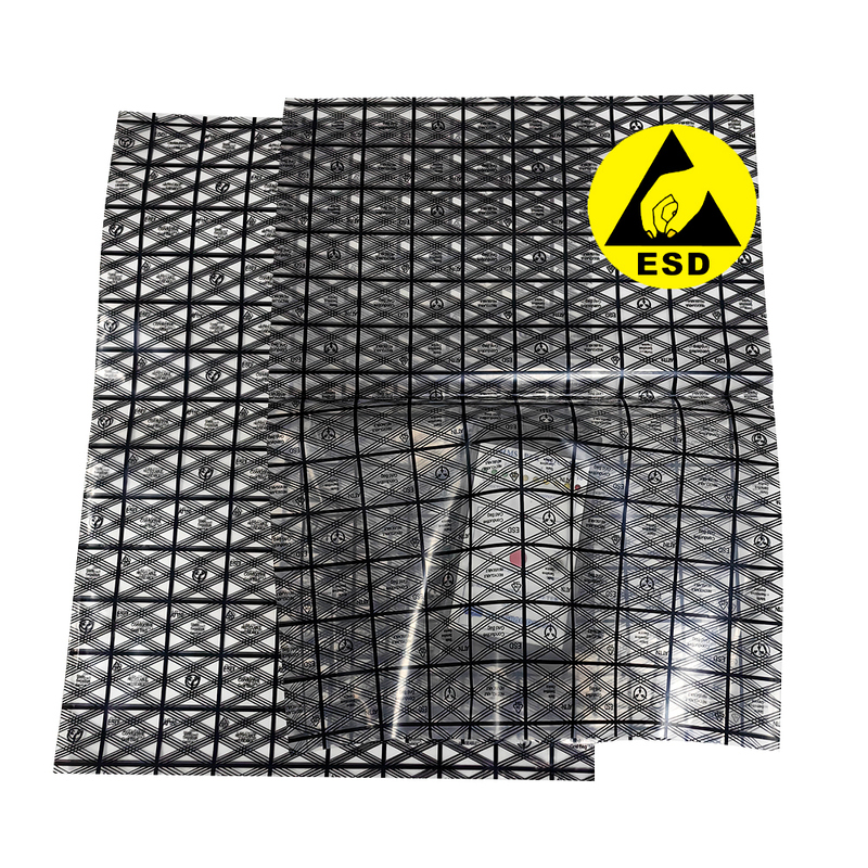 Anti static grid printed PE shielding bag is a high-performance and multifunctional packaging material specifically designed for storing and transporting precision electronic components, integrated circuit boards (PCBs), solid-state drives (SSDs), and other products that are highly sensitive to static electricity and electromagnetic interference. It combines anti-static (ESD), electromagnetic shielding (EMI/RFI), and customizable printing, making it a key packaging solution for industries such as electronics manufacturing, aerospace, and defense equipment.